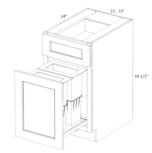 BWB18 - 18" W x 34.5" H x 24" D ( 1 Pull Out Door, 1 Drawer, 2 Trash Cans ) - $196.42
