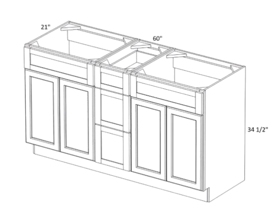 4 Door, 3 Dr, 2 False Dr Vanity Double Sink